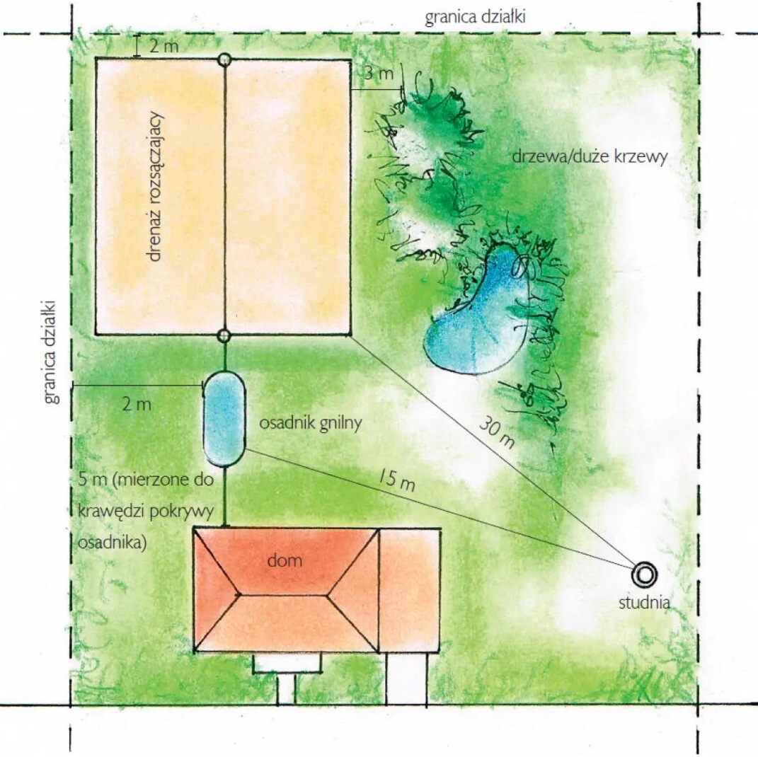 Prosimy o przeanalizowanie minimalnych odległości, jakie muszą być zachowane przy lokalizacji przydomowej oczyszczalni ścieków (wg Rozporządzenia Ministra Infrastruktury z dnia 12 kwietnia 2002r. w sprawie warunków technicznych, jakim powinny odpowiadać budynki i ich usytuowanie):