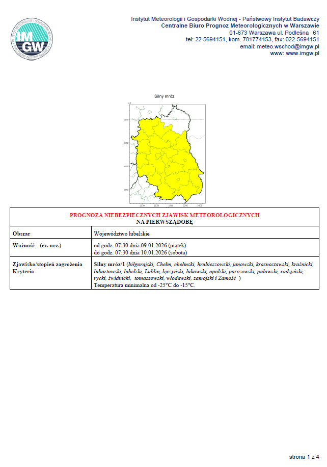 UWAGA MRÓZ! Prognoza pogody dla woj. lubelskiegoArchiwum