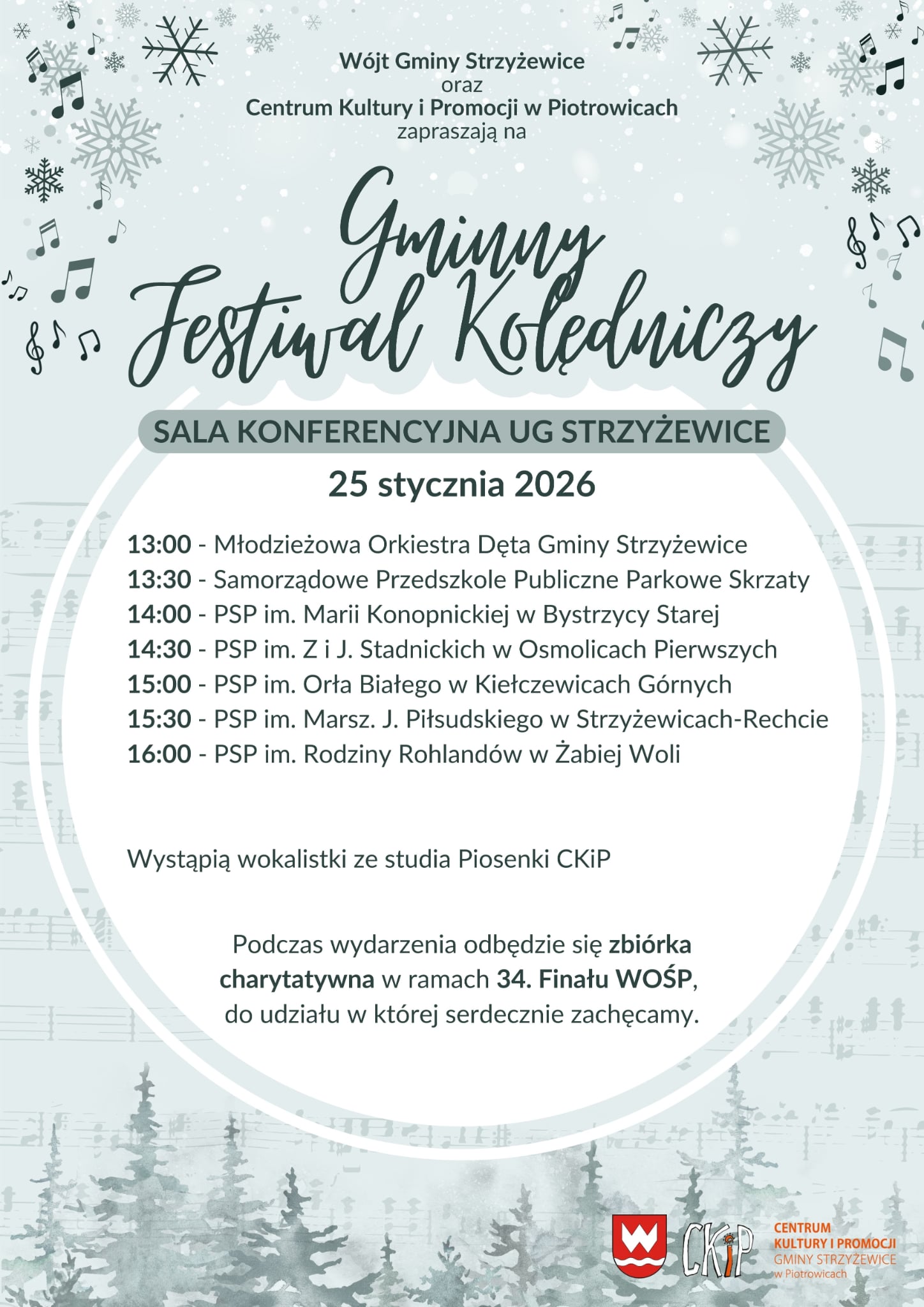 Serdecznie zapraszamy mieszkańców Gminy Strzyżewice na Tradycyjny Gminny Festiwal Kolędniczy, podczas którego zaprezentują się grupy kolędnicze z jednostek oświatowych z terenu naszej gminy. Wydarzenie odbędzie się w Sali Konferencyjnej Urzędu Gminy Strzyżewice 25 stycznia 2026, godz. 13.00.